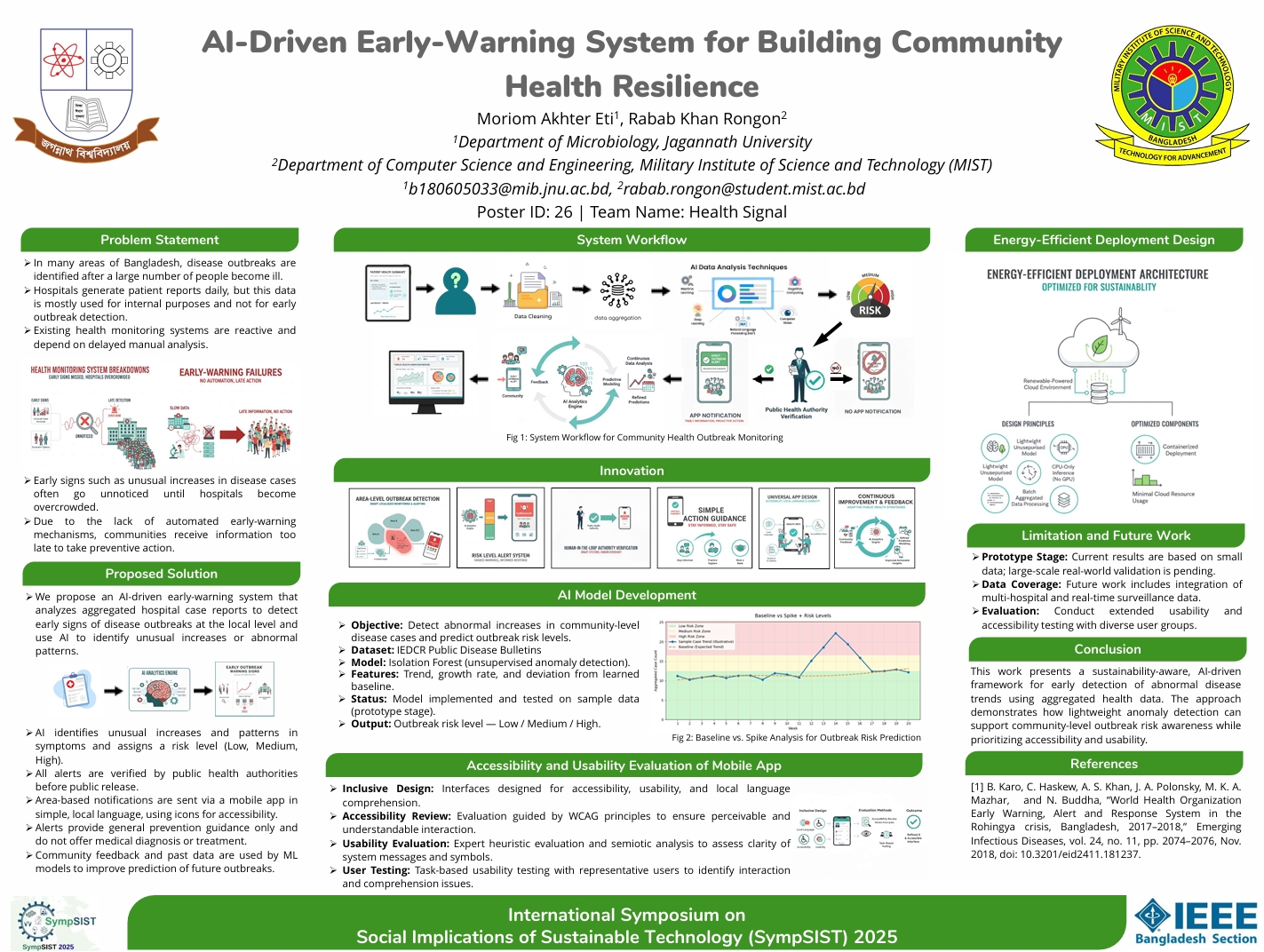 Awarded 1st Runners-up in Humanitarian Poster Presentation Category of IEEE SympSIST 2025.